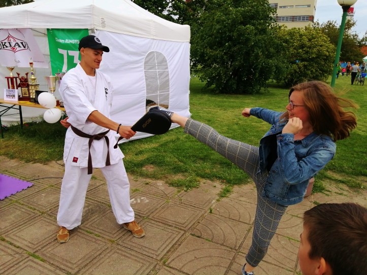 We were fortunate to be in Klaipėda the week that they held Olympine Diena 2019 which hosted a range of sports for people to try out, psyching people up for the 2020 Olympics. I tried out yoga and kickboxing… Ernie tried out hand printing..